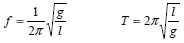 Pro frekvenci a periodu kmitání matematického kyvadla můžeme z tohoto vztahu odvodit