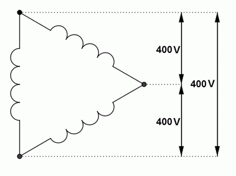 Spojením začátku jedné cívky s koncem druhé získáme tzv. spojení do trojúhelníku. Potřebujeme pak pouze tři vodiče, které vyvádíme z uzlů. Název spojení do trojúhelníku je odvozen z tvaru obrazce, který vznikne ve schématu spojení.