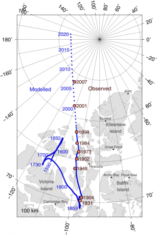 Navíc se po zemském povrchu oba magnetické póly dost rychle pohybují. Za posledních 120 let urazil severní magnetický pól dráhu asi 300 km a jižní dokonce kolem 1000 km. Z posledních měření vyplynulo, že póly se pohybují rychlostí 10 až 40 km za rok.