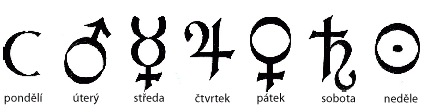 Astrologické symboly pro dny v týdnu.