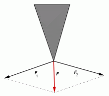 Čím ostřejší bude klín, tím větší síly F1 a F2 vyvolá.