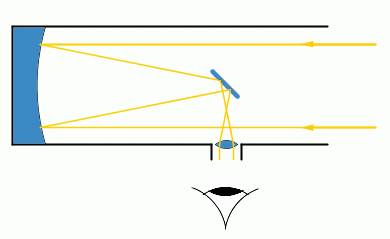 Newtonův zrcadlový dalekohled z roku 1668 se skládá z parabolického zrcadla, které má funkci podobnou spojné čočce. Je ze skla nebo keramického materiálu a povrchově pokoven – nejčastěji hliníkem. Světelné paprsky přicházející z nekonečně vzdáleného objektu se v dalekohledu odrazí od zrcadla do jeho ohniskové roviny, kde jsou malým rovným zrcadélkem odchýleny tak, aby se obraz mohl pozorovat postranním okulárem. Zrcadlový dalekohled vytváří skutečný a převrácený obraz objektu. Ohnisková vzdálenost a světelnost má stejný význam jako u čočkových dalekohledů.