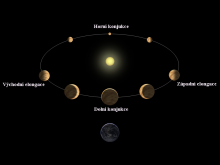 Měsíční fáze vznikají v důsledku oběhu Měsíce kolem Země, tedy různou polohou Měsíce vůči Zemi a Slunci. Měsíc svítí pouze odraženým slunečním světlem, vidíme vždy pouze osvětlenou část jeho přivrácené polokoule.