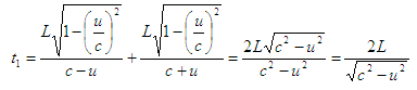 Na základě této úvahy můžeme objasnit negativní výsledek Michelsonova pokusu. Propuštěný paprsek neprojde dráhu L, ale dráhu zkrácenou, tzn. že čas t1