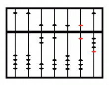 Chceme-li nastavit určité číslo, posuneme nejdříve odpovídající počet korálků představujících jednotky ke střední liště. Když nestačí 4, přidá se horní korálek představující 5.