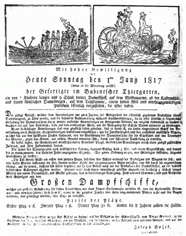 Josef Božek šel ještě dál a parní stroj se rozhodl použít jako dopravní prostředek. 24. září 1815 se pražská Královská obora stala svědkem historické události – poprvé od pokusů francouzského inženýra Cugnota se na evropském kontinentě rozjel vůz poháněný parou. Parní jízdu zopakoval Božek na témže místě znovu 1. června 1817, kdy předváděl i parní loď na Vltavě. Úspěšnou exhibici zkazila náhlá průtrž mračen, především ale krádež pokladny s vybraným vstupným. Zadlužený Božek pak ze vstěku vše rozbil a k experimentům s parním strojem v dopravě se už nikdy nevrátil.