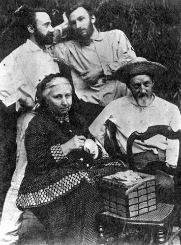 Pierre Curie (nahoře vpravo) se svými rodiči a bratrem Jacquesem.