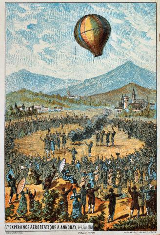 Oba bratři pocházeli z početné rodiny z Vidalon–Les–Annonay, Jacques byl předposlední z šestnáci dětí. Létáním se oba bratři zabývali od roku 1771. V knize O různých druzích plynů od Josepha Priestleyho se dočetli o lehkosti vodíku. Zkoušeli jím plnit papírové sáčky, výsledek byl vždy stejný – plyn unikl. Zkoušeli vodní páru, ta se ale na stěnách papírového sáčku srážela. Jedenáct let usilovně pracovali na nové myšlence. Až 2. listopadu 1782 byl Joseph na výletě se svou paní v Avignonu. V listopadu bylo škaredé počasí, oba promokli, a tak po návratu do hotelu sušili své prádlo u krbu. Tu najednou teplý vzduch z krbu vnikl do živůtku paní Montgolfierové a nadnesl ho a Joseph se nechal inspirovat. O týden později už na nádvoří rodinné továrny na papír ve Vidalonu se nadouvala velká papírová koule ovázaná provázkem. Následovaly další a další pokusy. 5. června 1783 se sešli občané města, pařížská smetánka a samozřejmě oba bratři k první veřejné produkci. Přihlížející příliš nevěřili, že by se pokus zdařil. Balon ušitý z taftu naplnili horkým vzduchem. Nejprve vystoupal do výšky asi deseti metrů a pak náhle vystoupal až do výšky asi 2 km. V této výšce plul deset minut a pak začal klesat za domy, narazil na zeď vinice, vzňal se a shořel. První montgolfiera byla na světě. Jejich sláva rostla.